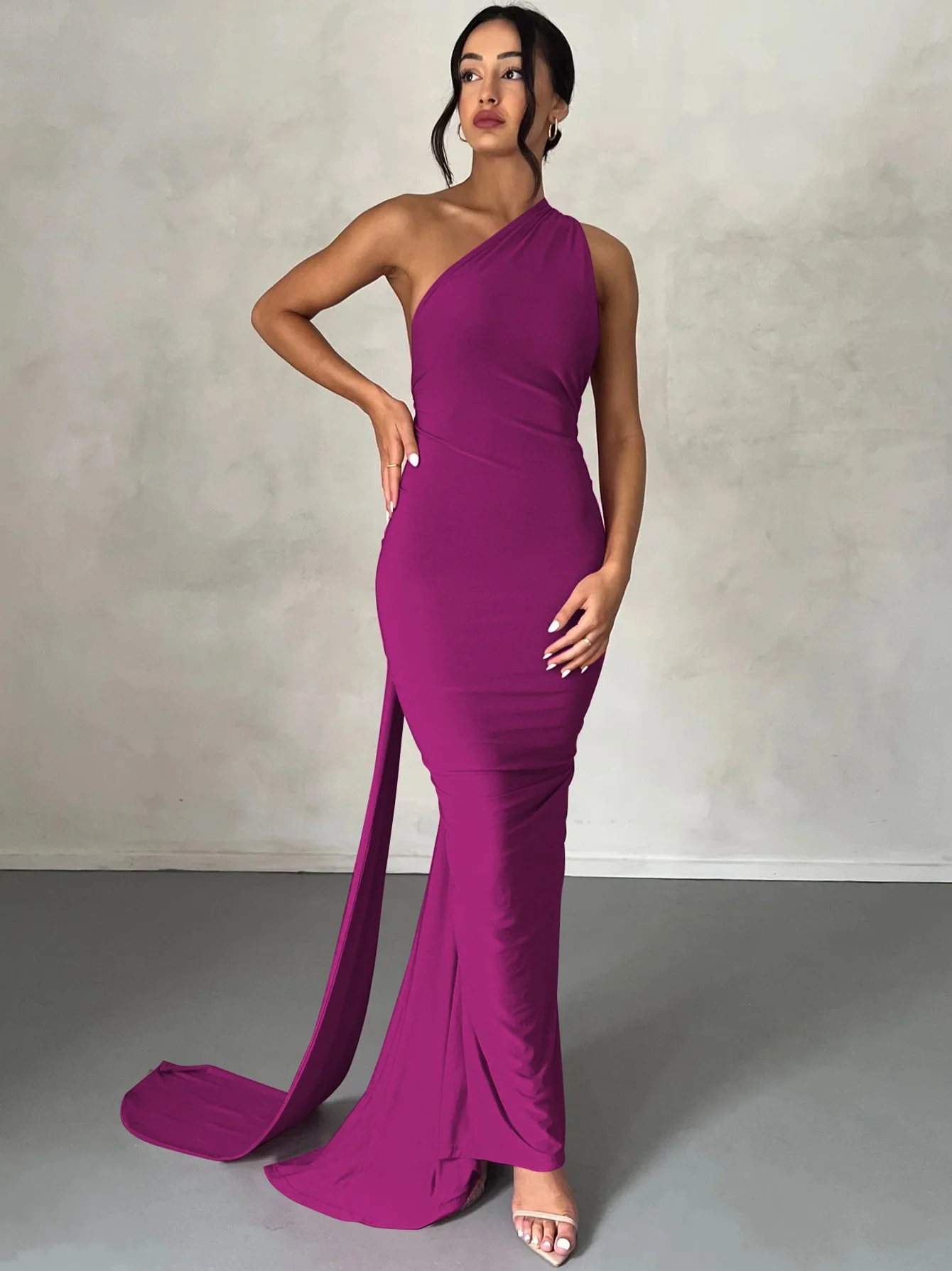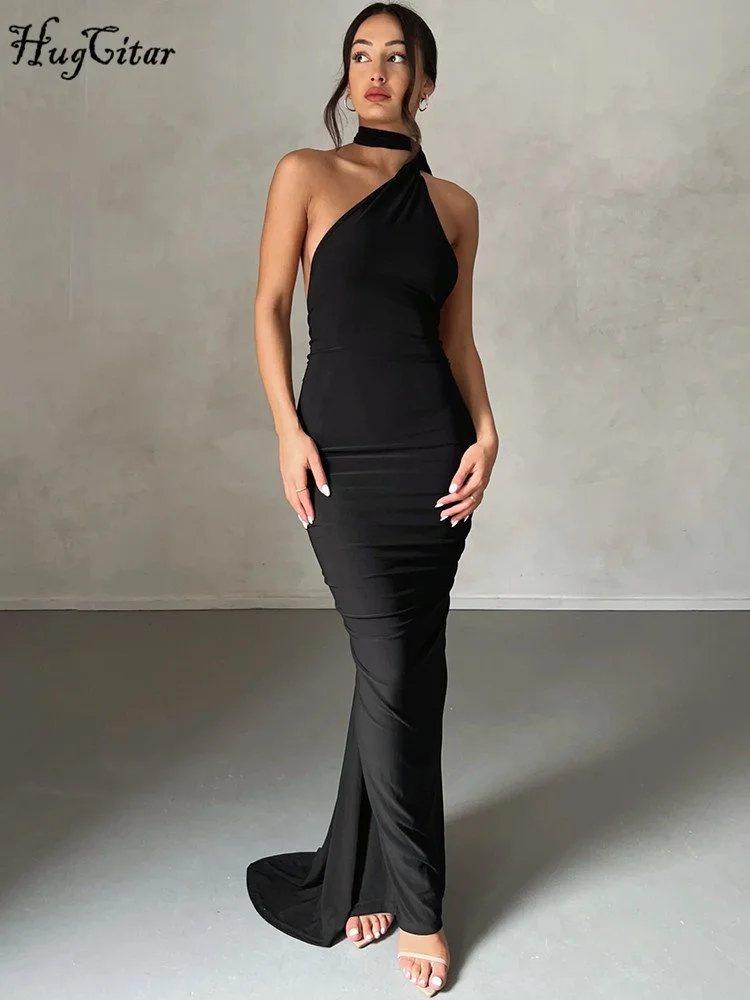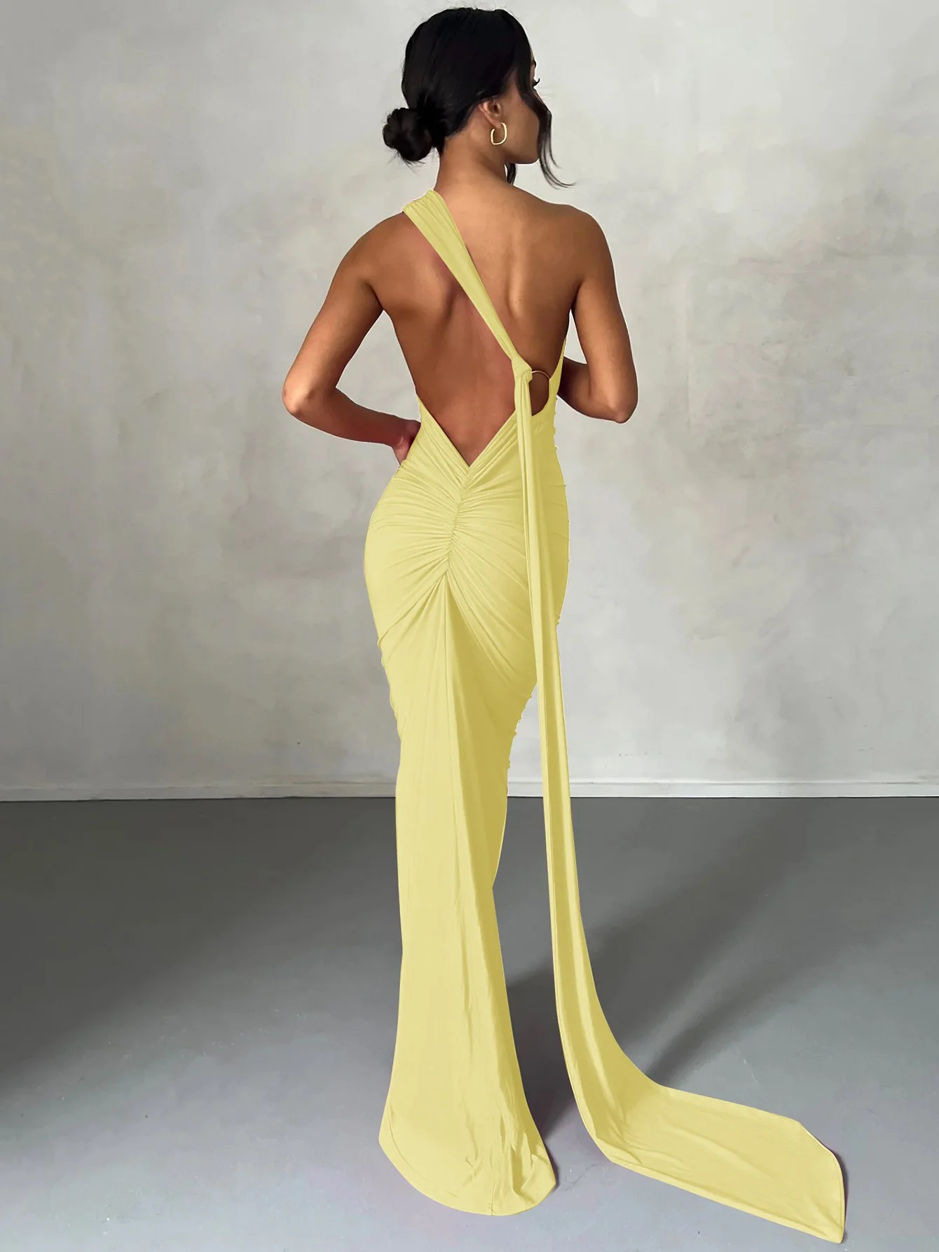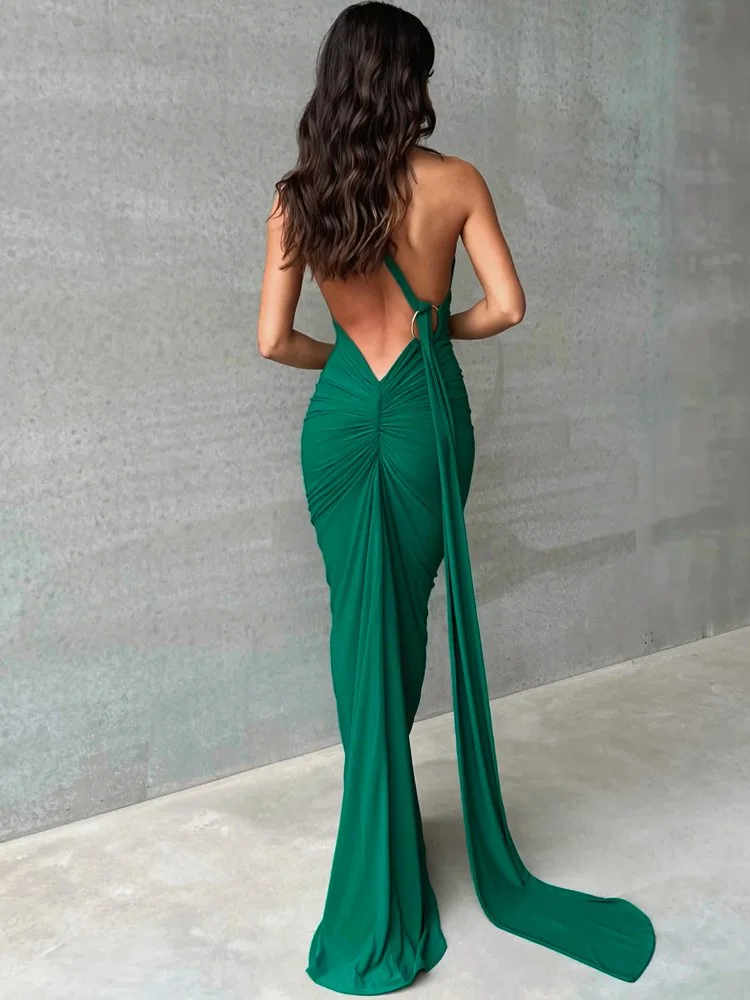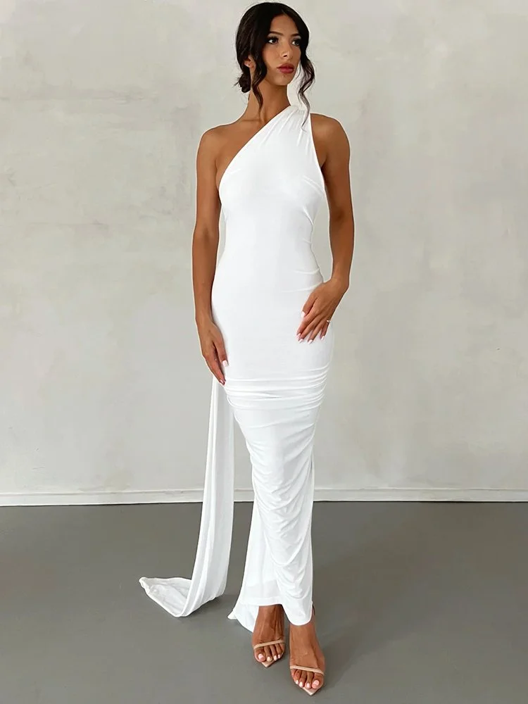 Women One Shoulder Backless Adjustable Scarf Loop Elegant Sexy Maxi Dress